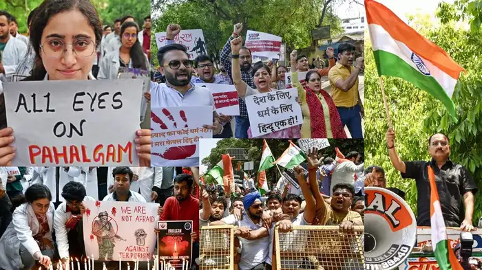 New Delhi: People's anger against the terrorist attack in Pahalgam is not subsiding. Protests were held at various places today also against the killing of 26 tourists. At some places, a tribute meeting was organized, while at other places candle marches were taken out to express protest.