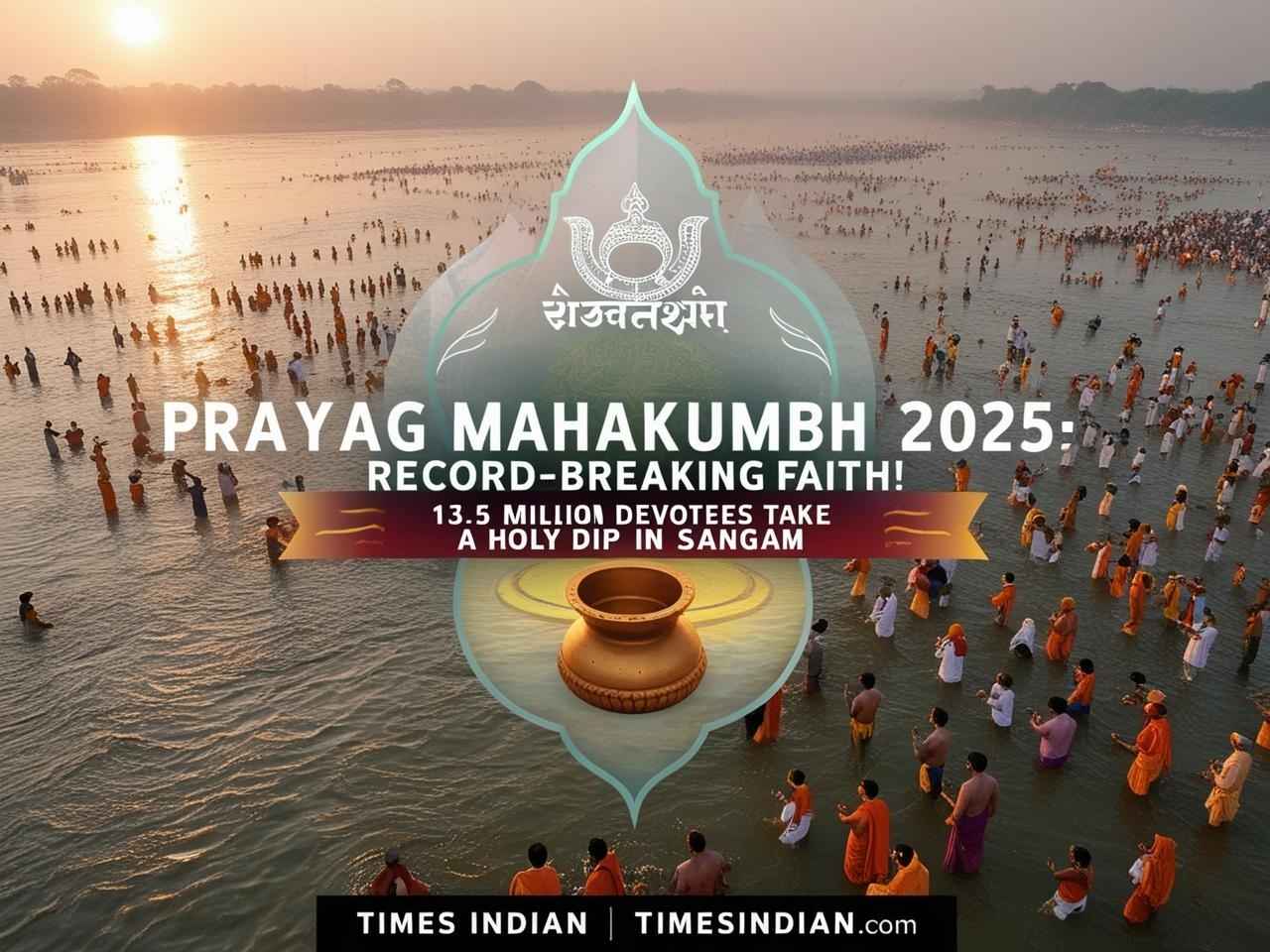 Prayagraj, 17 February 2025: An unprecedented crowd of devotees is being seen in the Prayag Mahakumbh Mela. On February 17, more than 1.35 crore (13.5 million) devotees took a holy bath in the confluence of Ganga, Yamuna and invisible Saraswati. Thus, since the beginning of the fair on January 13, 2025, a total of more than 54.31 crore (543.1 million) devotees have taken a dip of faith in this great festival, which is a historical record.
