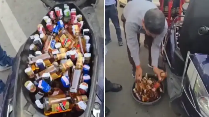 In this video, the Excise Officer can be seen taking out liquor bottles from the trunk of the scooty. From the trunk to the space ahead, the guys have kept liquor bottles. This incident is being told of Haldwani, Uttarakhand. Where the 'party on wheels' was planned by hiding 50 liquor quarters and 5 half bottles.